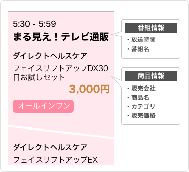 独立局を含む地上波すべての放送局、主要BS局のテレビ通販の番組データが7日間見放題!