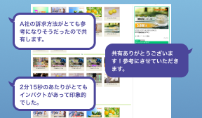 市場調査、新規の商材や企業、クリエイティブの流行りなどについてのリサーチ等、気になった情報はその場で共有。通販企業と広告代理店との間に発生するコミュニケーションを劇的に効率化することができます。